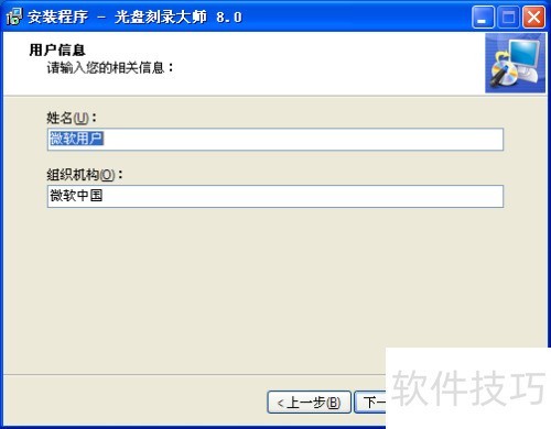 6、 遇到用户信息这一项,可忽略不管,直接点击下一步继续操作。