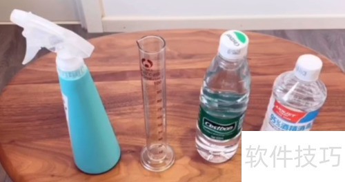 1、 准备工具与材料:一瓶95%酒精、一个量筒或量杯、一瓶纯净水或蒸馏水,以及喷壶。配制方法:每100毫升95%酒精加入26.67毫升蒸馏水,可得到126.67毫升75%浓度的消毒酒精。按此比例计算并混合均匀即可。