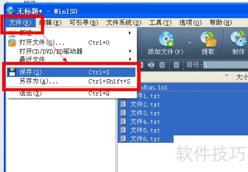 6、 选中这些文件,通过文件菜单里的保存或另存为选项,即可生成ISO镜像文件。