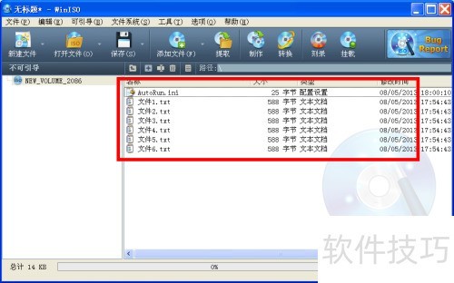 4、 此时,WinISO操作界面会显示刚才选择的文件。