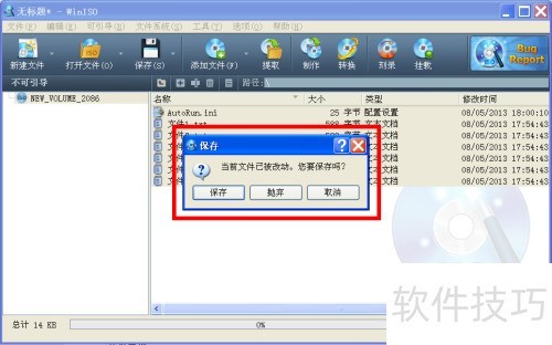 8、 制作镜像时,程序会提示是否保存文件,单击保存按钮即可继续操作。