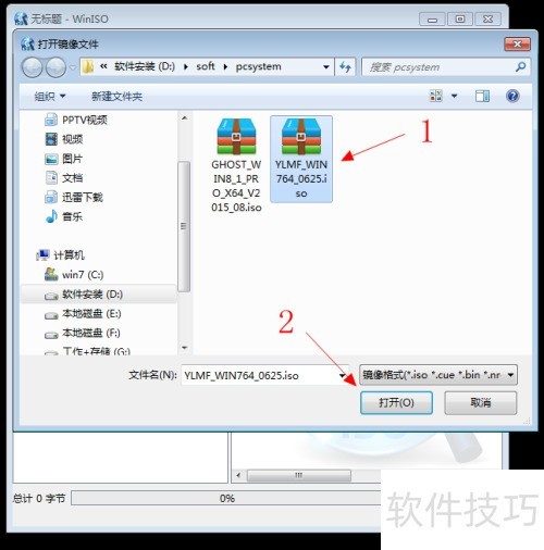 7、 选择一个镜像文件(虽然我电脑里没有现成的镜像文件,这里以系统文件为例演示,建议大家选取常规镜像文件使用)。