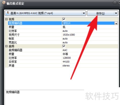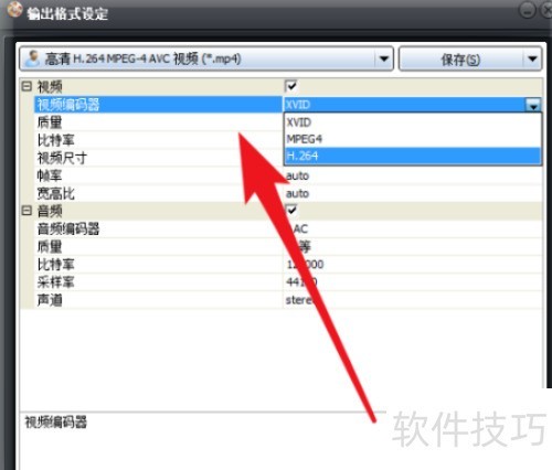 3、 根据需求,设置视频编码、尺寸、质量、宽高比及音频参数。