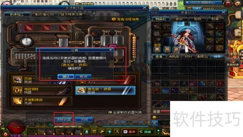 3、 选中武器后,点击下方选择武器按钮,系统会询问是否确认选择,之后更换需消耗金币。