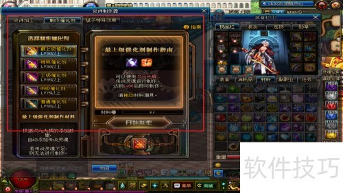 4、 确定后即可进入制作页面,添加催化剂,旁边放入碳结晶体(打LV55以上地图的领主必得),然后点击下方的制作按钮完成操作。