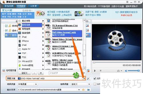2、 选择输出格式时,这里有多种视频格式可供挑选。如果后续需要刻录成光盘,建议选择DVD-Video Format(*.vob)作为输出格式,以便生成适合DVD的视频文件。