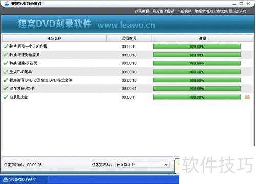 7、 软件将跳转至如下界面并启动刻录程序,速度较快。刻录完成后,光盘会自动弹出。
