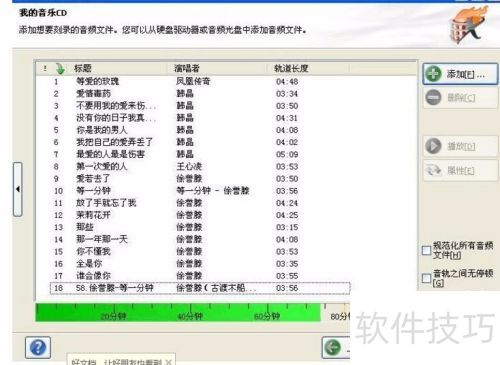 6、 添加要刻录的音乐文件,不建议过多,以免损坏。推荐选用wav格式,数量以16至17首为佳。添加完成后,点击下一步继续操作。