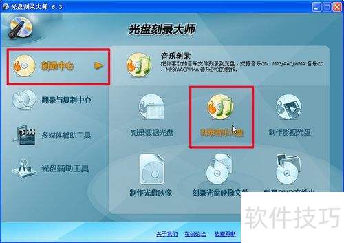 9、 选择刻录中心,然后点击刻录音乐光盘。