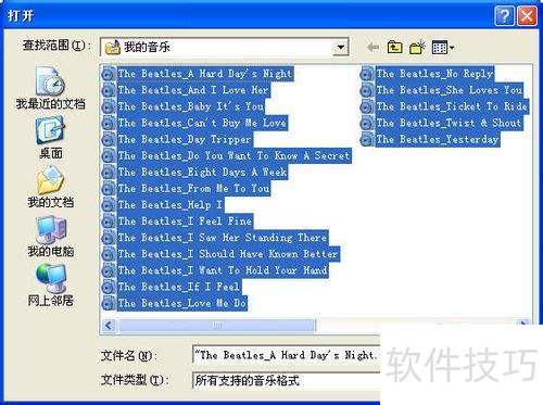 12、 选中音乐目录下的所有音频文件,然后点击打开。