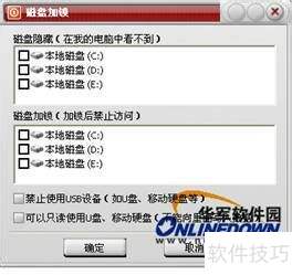 18、 点击磁盘加锁后,弹窗中选择目标磁盘。您可以隐藏磁盘,让他人使用电脑时看不到它,也可上锁保护,防止别人访问。此外,还能设置禁用USB设备或将其设为只读模式,进一步保障数据安全。
