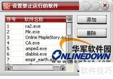 14、 勾选禁止运行其他软件,点击编辑软件列表按钮,会弹出一个窗口。在窗口中选择需要禁止运行的软件,点击添加,定位到本地文件存储目录后,点击打开即可完成设置。若要移除禁用的软件,直接点击删除按钮即可。