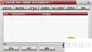 21、 计划任务功能可实现自动化的操作,例如定时关机、锁屏或断开网络等。你可以设置特定时间触发任务,比如每年、每月、每周、每天的某个时刻,或者指定一个具体时间,用于提醒、播放音乐、运行程序或打开网址等操作。在软件界面中点击计划任务按钮,输入管理员密码(默认为888888),再点击添加。在新弹出的窗口里设定任务执行时间,选择任务类型,填写提醒内容,最后点击确定完成设置,即可实现所需的任务安排。