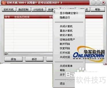 4、 安装完成后,可以通过双击桌面的定时关机3000图标启动软件。或者点击开始菜单,找到定时关机3000程序组,选择对应选项启动。软件启动后会进入所示的界面。
