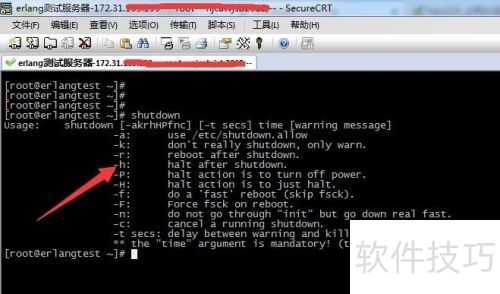 3、 工作中,shutdown命令常带参数使用。其中:重启计算机后,网络接口识别完成仍可登录服务器;带某参数时并非真正关机,而是向每位登录用户发送警告信号;另一参数会在关闭服务器后切断电源,执行后无法再登录,除非手动按下服务器电源键启动设备。