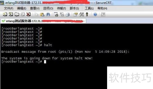 4、 halt命令是简单的关机指令,实质上调用了shutdown -h。执行时,它会终止应用进程,待文件系统写操作完成后,停止内核运行,从而关闭系统。这是非常基础的系统操作命令之一。