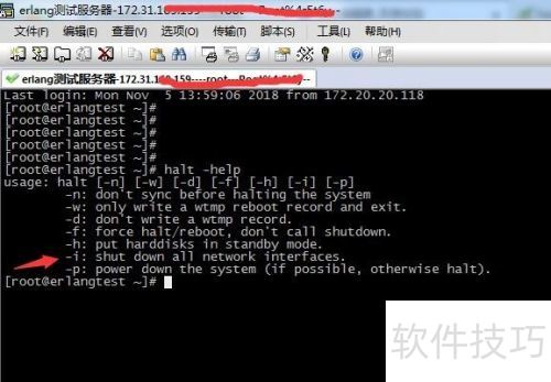 5、 在实际使用中,halt命令有一些常用参数。例如:不调用shutdown直接强制关机或重启;关机前先关闭所有网络接口;还有一个缺省选项,实际上是关机时调用poweroff功能。这些参数可根据需求灵活使用。
