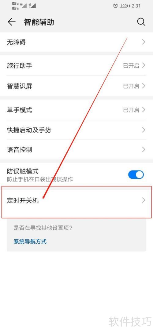4、 开启智能辅助,进入界面后找到定时开关机选项,所示。