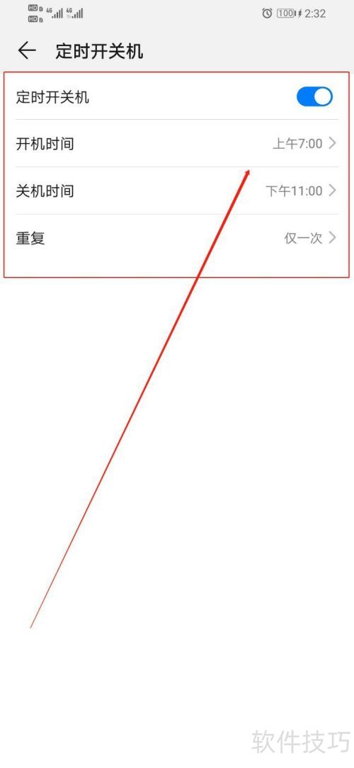 10、 在定时开关机界面,开启右侧开关,并设置开机与关机时间即可完成操作。