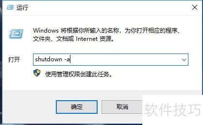 3、 取消自动关机操作:按下Win+R,输入shutdown -a即可实现停止计划关机命令。