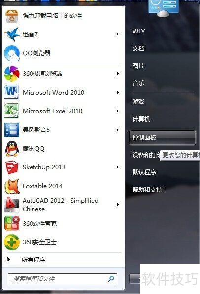 2、 打开控制面板;