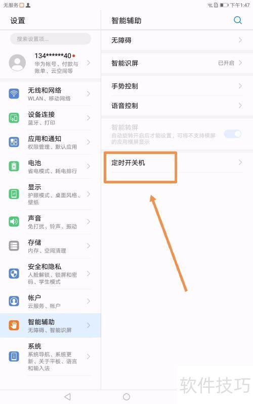 3、 随后,在智能辅助界面中点击定时开关机选项。
