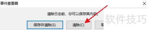 3、 点击保存并清除或清除按钮确认,事件日志会立即被清空。