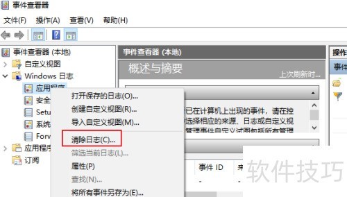 要清除Windows事件日志,可通过事件查看器按照以下步骤操作: