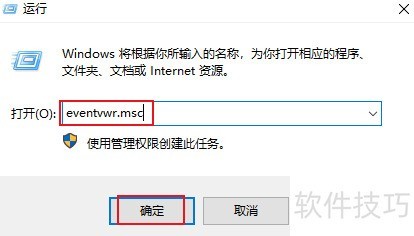 1、 按下 Win+R 键开启运行对话框,输入 eventvwr.msc,点击确定以打开事件查看器。