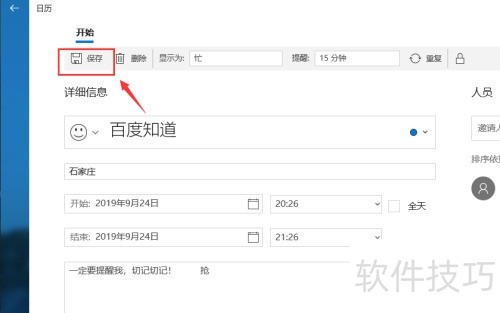 4、 填写完成后,点击左上角保存按钮,即可成功创建定时事件提醒。