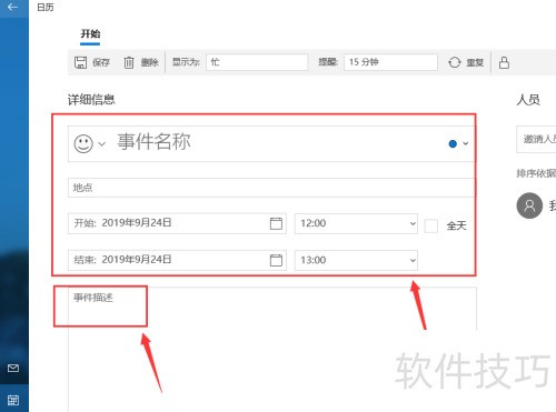 3、 请填写提醒事件名称、时间范围及详细内容。