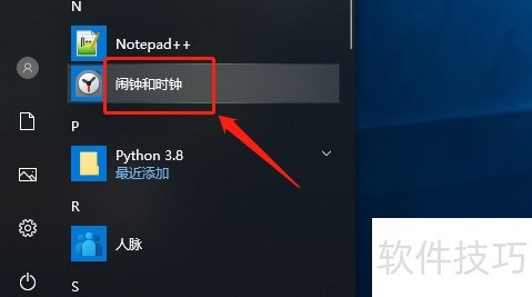 6、 首先,点击开始菜单中的闹钟和时钟选项。