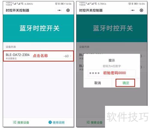 1、 点击设备后输入密码,初始密码为0000,请及时修改。