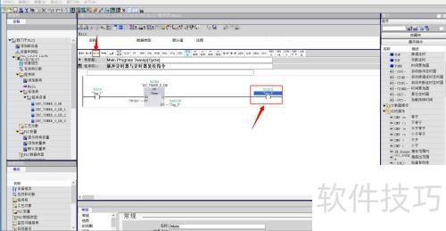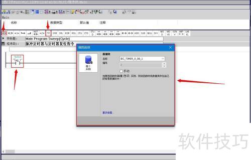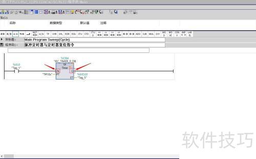 3、 点击后,程序段1启动,输入脉冲定时器并复位定时器指令。