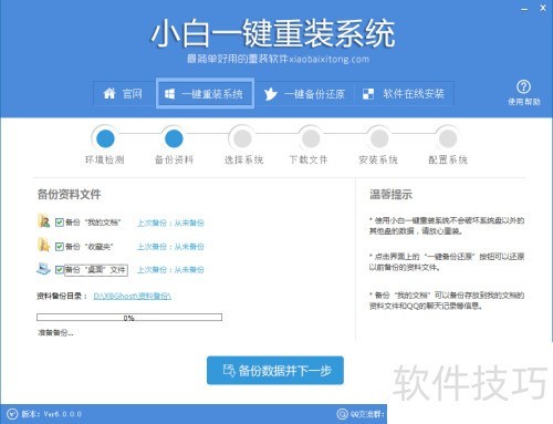 4、 这一步是备份电脑桌面和收藏夹等C盘文件,按需勾选所需项进行备份,完成后进入下一步。