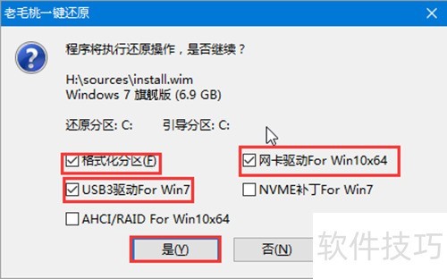 4、 出现一键还原提示框时,默认已勾选,点击是即可继续安装。