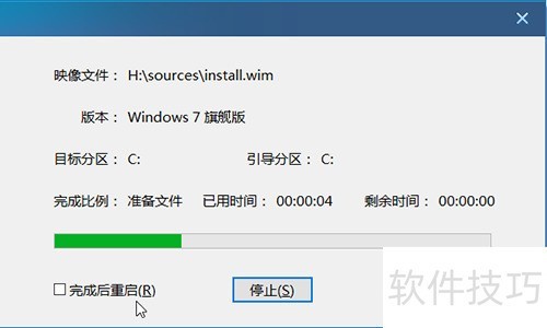 6、 重启后,电脑将自动进入系统部署阶段,请耐心等待。出现Win7界面即表示重装成功。