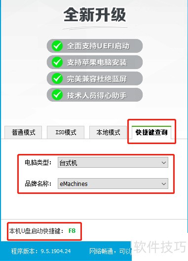 3、 制作启动U盘时,可查询对应电脑型号的快捷键,以便从官网或界面获取信息。