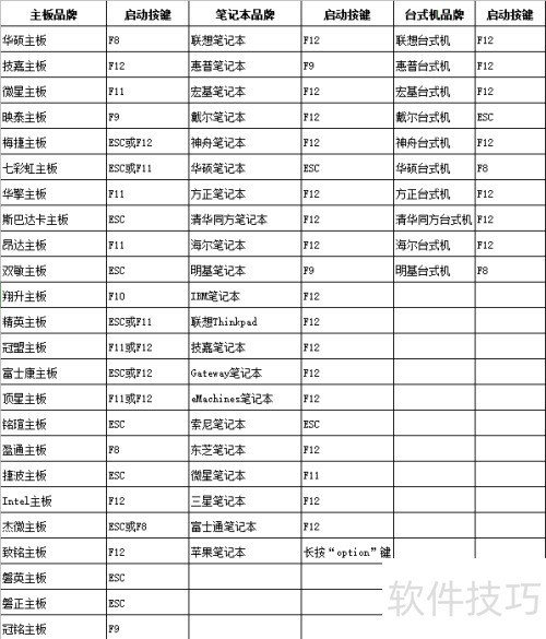 4、 以下是部分电脑型号的U盘启动快捷键汇总。