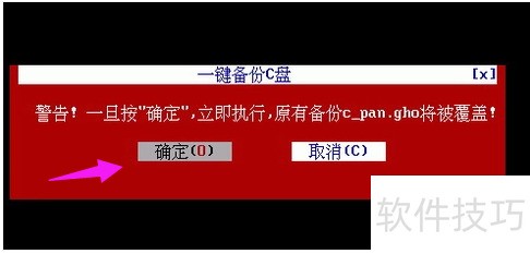 4、 按下弹出窗口的确定键,程序会自动通过Ghost将C盘系统备份至D:c_pan.gho。