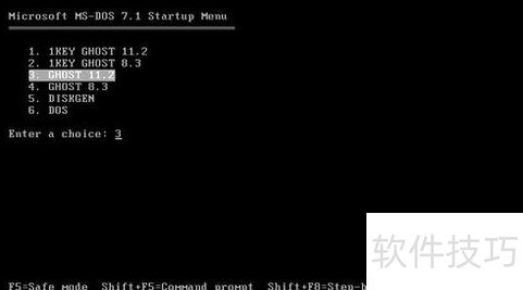 2、 在Windows XP系统中安装时,程序装好后会自动生成双引导菜单。重启计算机后,根据提示选择1KEY GHOST 8.2 Build 050706就能进入DOS环境。