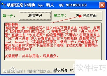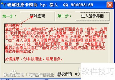 1、 在百度搜索清除冰点还原精灵密码的软件,选择无需安装、直接使用的工具,打开后点击清除密码按钮即可。