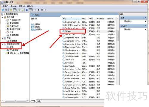 3、 接着定位到DFServ,右键点击后选择属性。