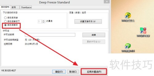 4、 电脑重启后,发现冰点还原的小图标上出现×,表示已禁用还原功能。