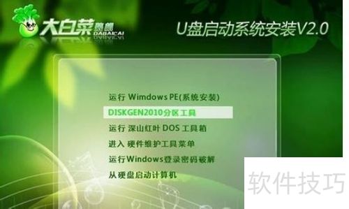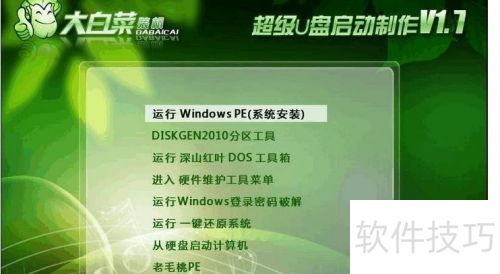 7、 以下是双系统启动问题的解决方法:重启电脑,按下开机键的同时按住F12键,进入启动菜单。选择从U盘启动(USB HDD)。在大白菜安装界面,选择运行Windows PE即可继续操作。