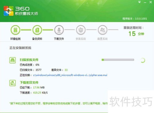 4、 选择纯净重装,或保留重装时选好备份资料,点击下一步即可开始重装。开始后,您会看到以下界面: