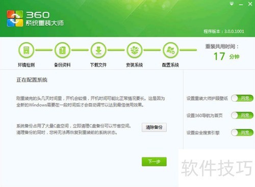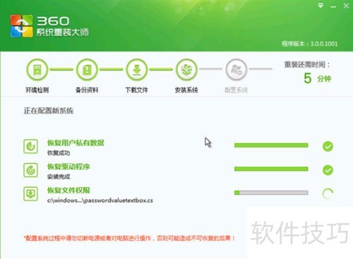 5、 系统实际上已安装完毕。为提升易用性,新版本新增了系统配置环节。该环节将扫描驱动运行状态,确保所安装系统中的驱动均可正常运作,让您的使用更加顺畅无忧。