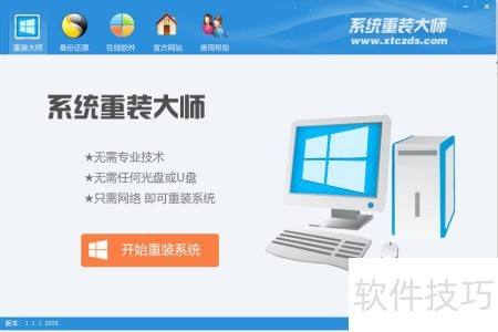 1、 首先,访问系统重装大师官网,下载并打开软件。进入主界面后,点击立即重装系统以继续操作。