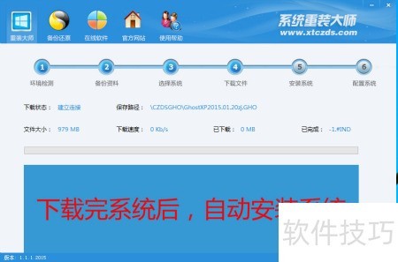 5、 第五步,软件将下载您选择的系统Ghost版本,界面会清晰显示各项数据。请耐心等待下载完成,结束后系统会自动安装。