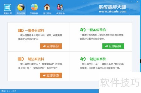 系统重装大师是款Ghost一键重装工具,兼容XP/Win7/Win8系统在线安装。只需轻点鼠标,程序便会自动检测并配置最佳方案,完成系统的重装、备份或还原操作。简单一按,轻松恢复如新!